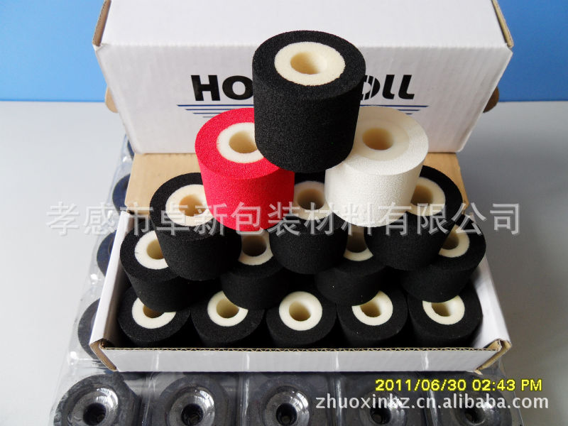 热烫墨轮是由油墨和海绵载体组成的,油墨和海绵载体都是需要特殊工艺处理的,海绵载体经过高密度的压缩和工艺加工,然后在海绵载体内注入油墨就成了热烫墨轮。广泛应用于食品、医药、饮品等行业的各种软包装、纸张、塑料袋等材料表面打码。打印各种文字、数字标识,如:制造日期、批号、有效期、重量、数量等。特点:使用方便,字迹清晰,不易脱落、快干、无污染,打印次数多,打印费用低。