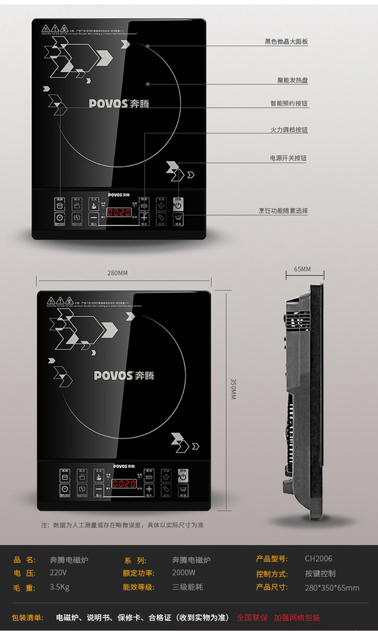 奔腾电磁炉家用节能大功率多功能触屏一体节能宿舍专用CH2006炉灶