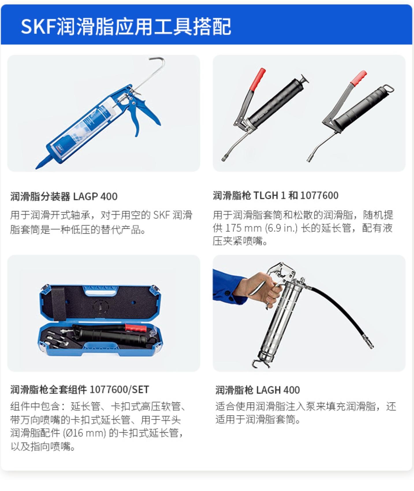 - 可靠: 经测试证明SKF所有润滑脂均可用