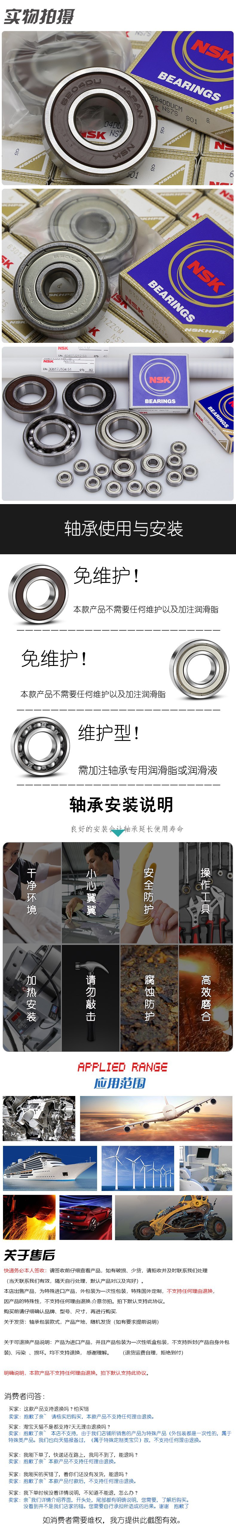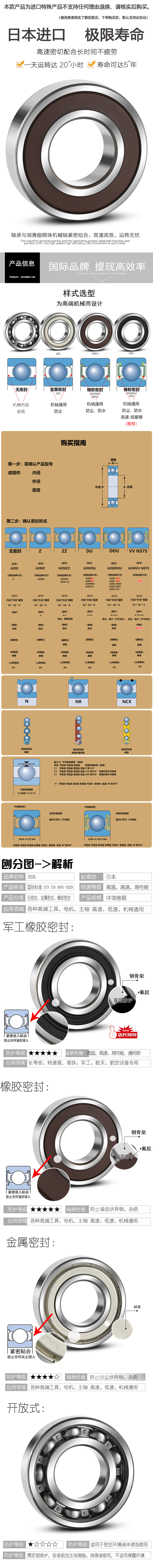 特性 深沟球轴承是应用最普遍的轴承类型,广泛应用于在不同的领域。 深沟球轴承包括带防尘盖及密封圈、内部填充润滑脂的密封轴承,应用方便。 另外还包括,用于安装定位的外圈带止动环轴承、吸收轴承座温升引起的轴承配合面尺寸变化的膨胀补偿轴承、 以及耐油污垢强的TAB型轴承等各种各样的轴承。