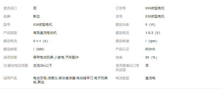 产品型号:030微型电机