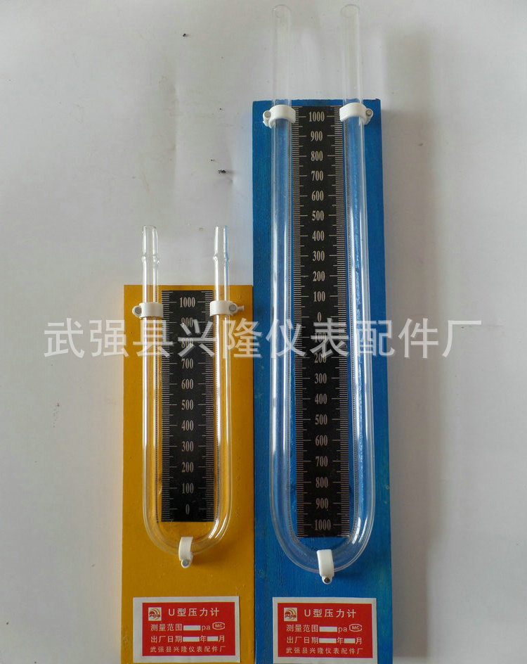 U型玻璃管压力计的体积小,重量轻而且还很智能化。广泛用于测量风扇和鼓风机的压力、过滤器阻力、风速、炉压、孔板差压、气泡水位及液体放大器或液压系统压力,同时也用于燃烧过程中的空气煤气比值控制及自动阀控制,以及医疗保健设备中的血压和呼吸压力监测。 在使用U型玻璃管压力计的时候必须把它垂直悬挂在墙上或者支座上,然后根据被测物压力的大小在U型玻璃管内注入工作液,(汞或有色纯水)注入量以至标尺刻度的1/2处为宜。 1、必须保持玻璃管内壁及工作液的纯洁纯净,不用时,应用纱布或其他遮盖物遮住管口,以免影响测定位的精确。 2、使用U型玻璃管压力计测量前必须注意所有压力计的最大量度应大于或等于被测压力,以防工作液冲出玻璃管口。