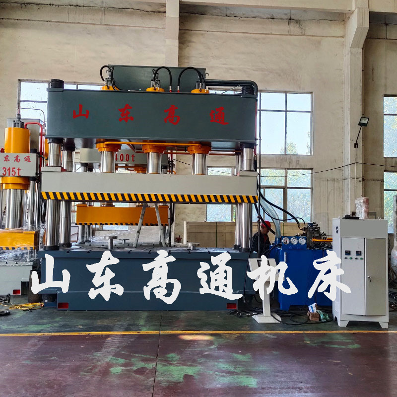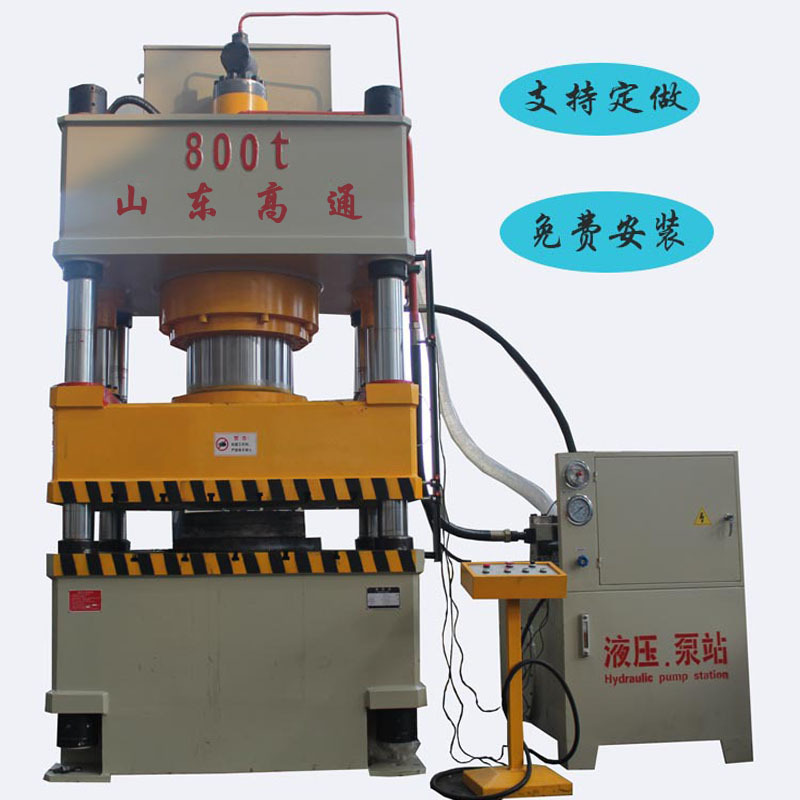 山东高通800吨防雨棚,雨搭成型液压机,630t金属压花四柱油压机技术参数可根据客户要求定制开口高度,工作台面积、油缸行程、工作速度等。帮您设计定做各种液压设备。