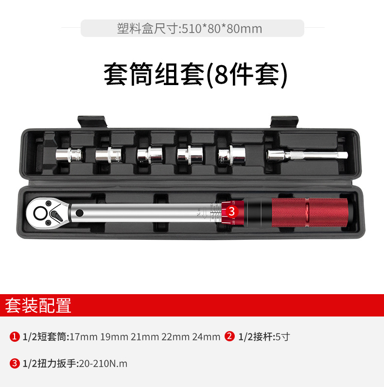 巨众8件轮胎套筒维修扭力扳手组合20-210N公斤扭力矩扳手套筒套装