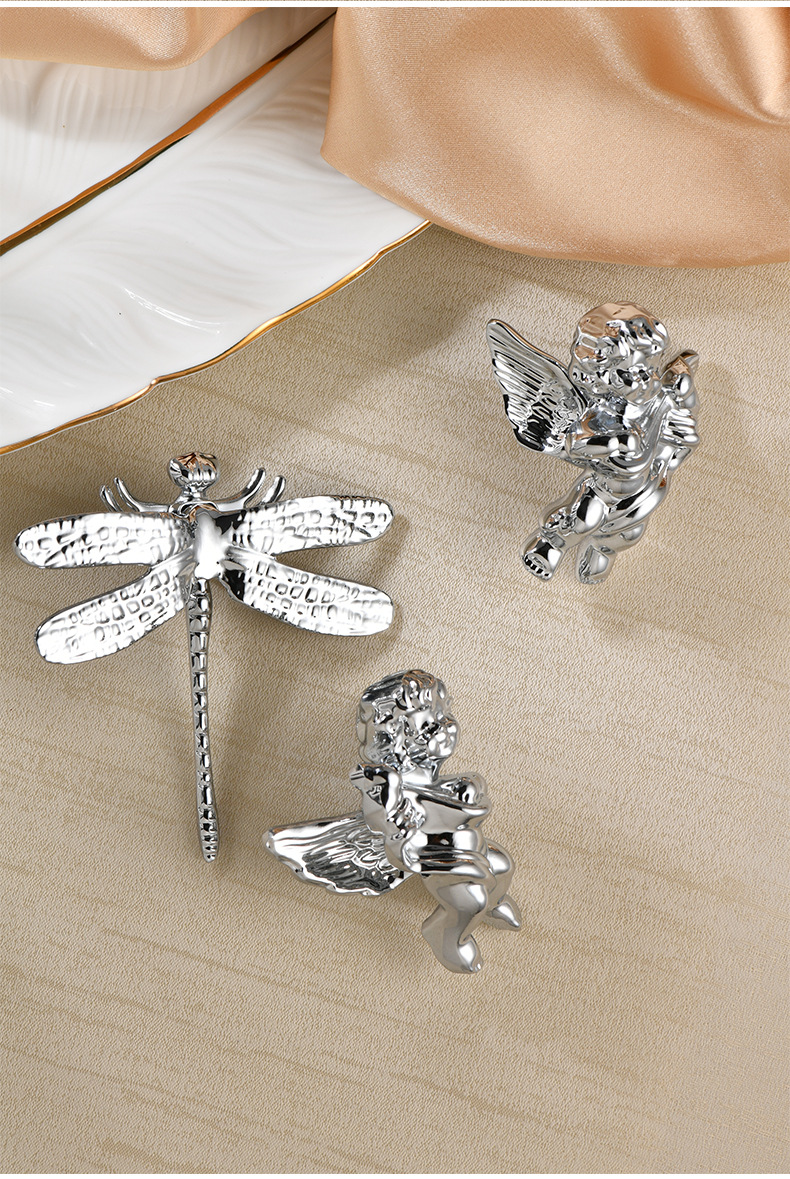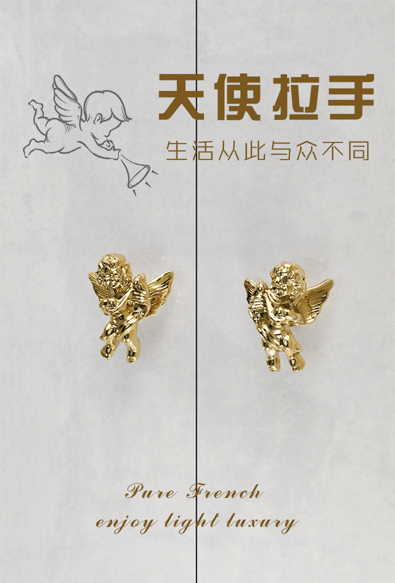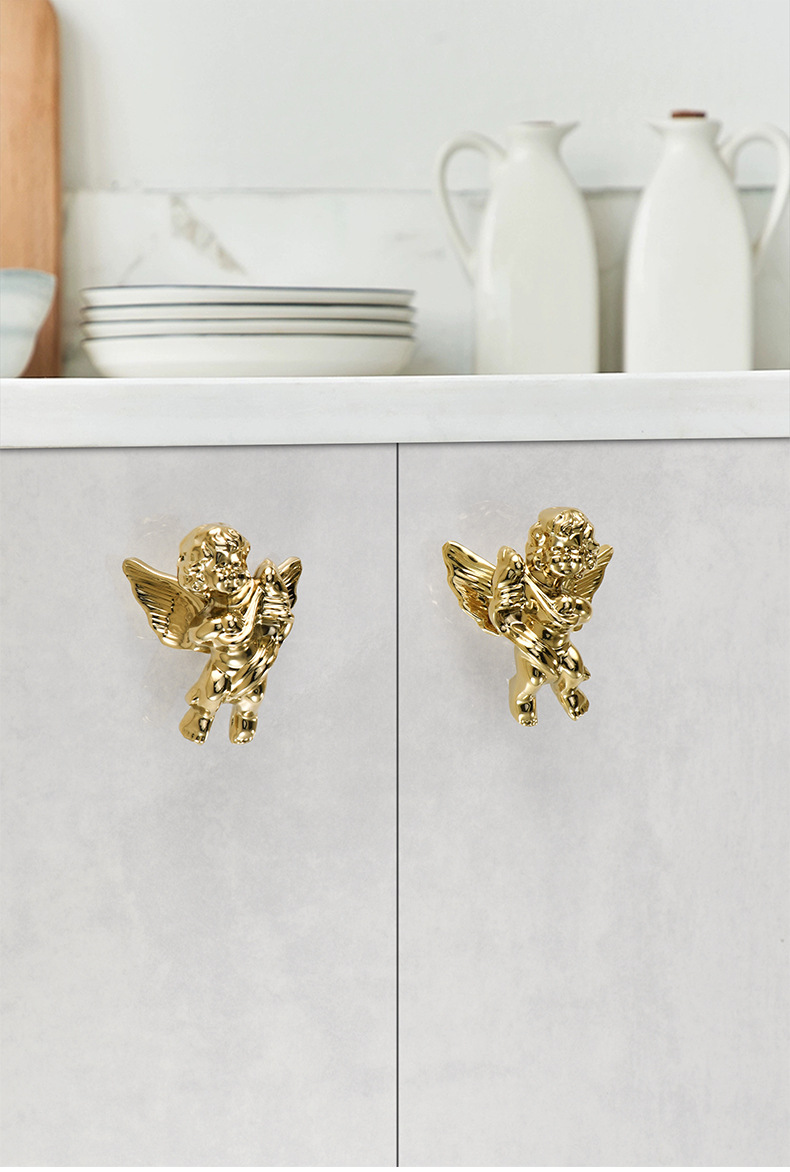 衣柜门可爱小天使黄铜拉手 创意儿童房间柜门蜻蜓蝴蝶铜把手