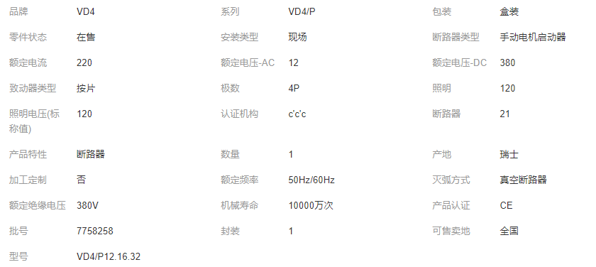 原装A BB真空断路器保护VD4系列VD4 12.06.32 P210 (HE) N中高压可选
