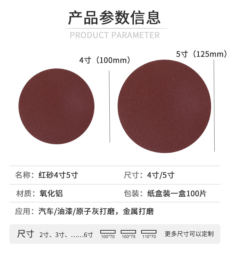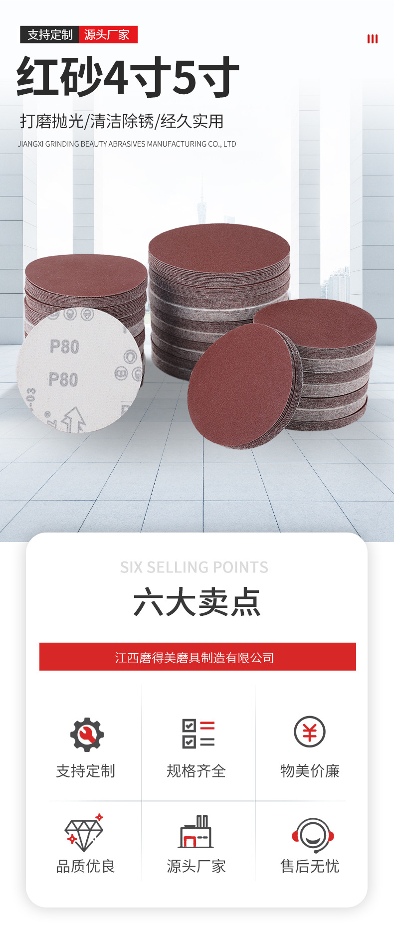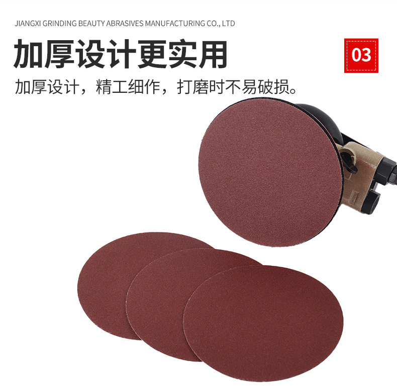 植绒红砂纸片 红砂4寸5寸 自粘植绒磨砂纸 打磨抛光圆形批发砂纸