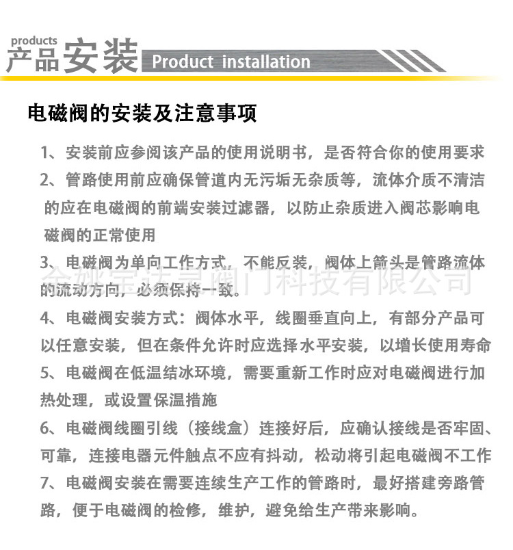 4、流体粘度:通常在20cSt以下可任意选择,若粘度高,则要选用高粘度电磁阀。