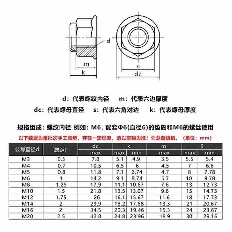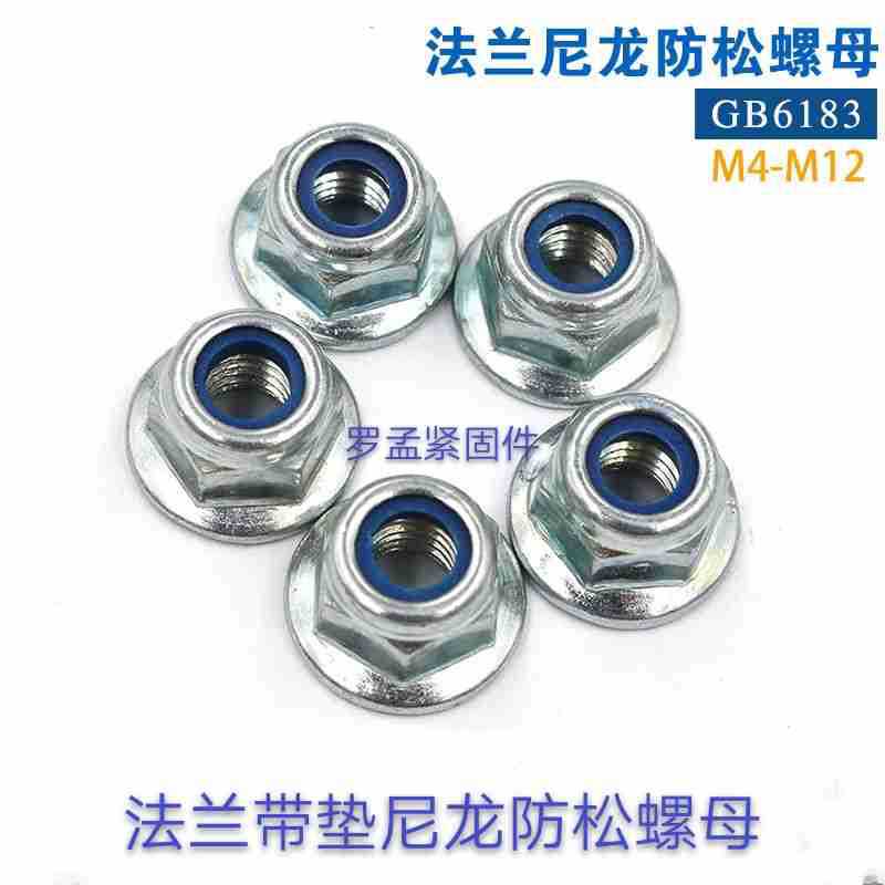 GB6183六角带垫法兰尼龙防松螺母防滑自锁M5M6M8M10M12M14M16