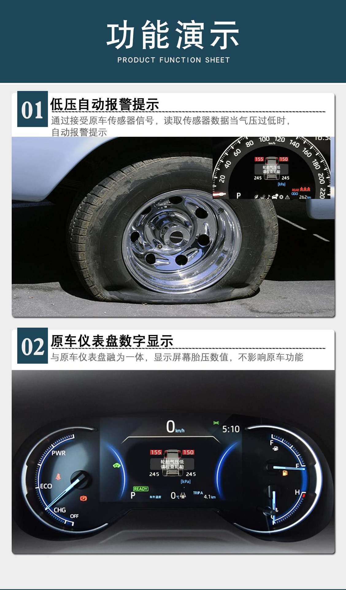 浏览次数:440适用于丰田2020款威兰达RAV4全新荣放胎压监测系统内置仪表盘显示 |