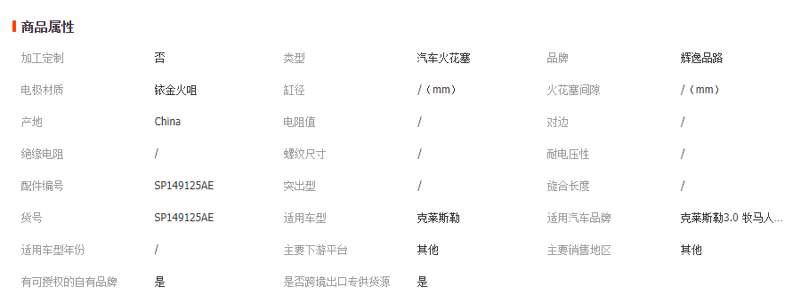适用克莱斯勒3.0 牧马人战马火花塞大捷龙吉普道奇公羊SP149125AE