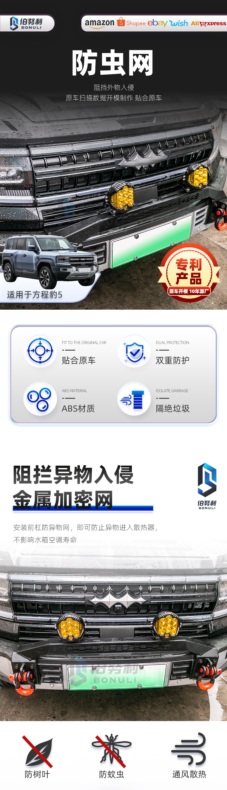 伯努利适用24款方程豹5防虫网进风口保护罩一体式防虫网汽车改装