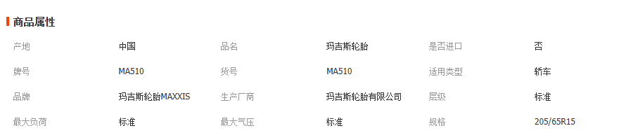玛吉斯轮胎MAXXIS 205/65R15 MA510 子午线轿车轮胎