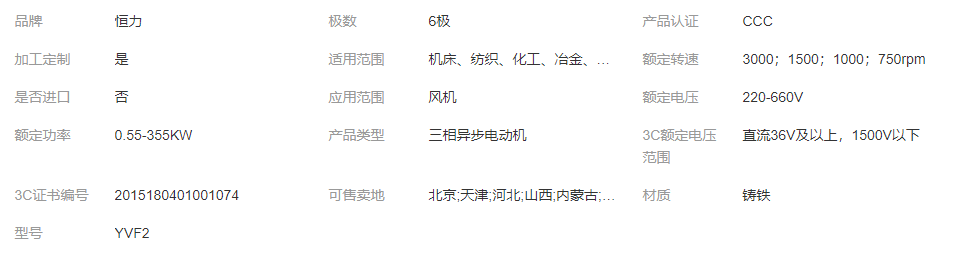 恒力YVF2节能变频三相异步电动机 噪声低 调速性能好