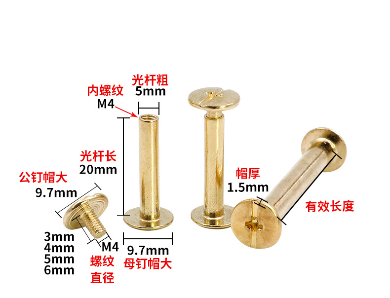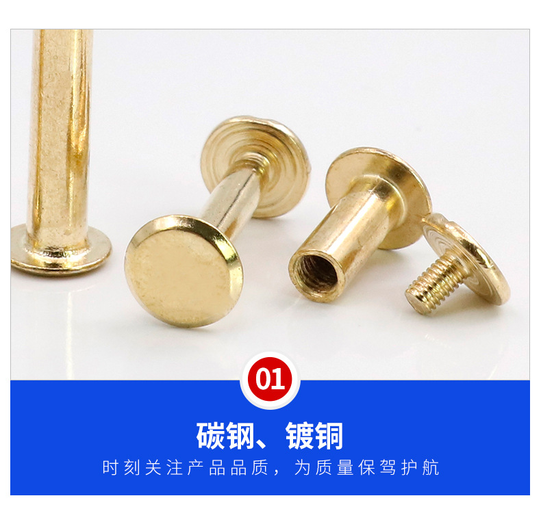 碳钢镀铜子母螺丝铆钉螺纹对锁螺丝菜谱帐本相册子母装订扣M4 M5