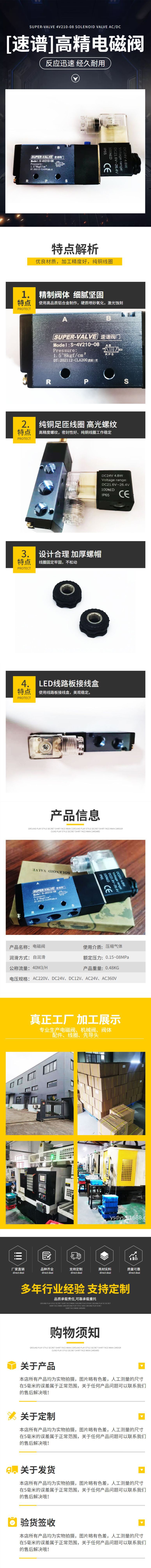 亚徳克型厂家批发速谱电磁阀4V210/220-08二位五通换向先导1/4