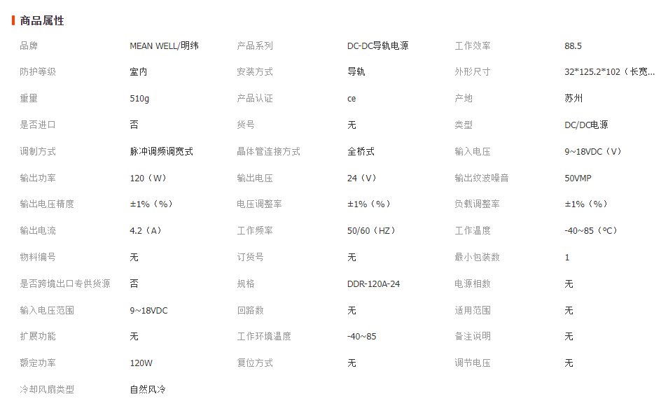 明纬开关电源DDR-120A-24导轨120W 9~18V/含12V 15V转24V DC转DC