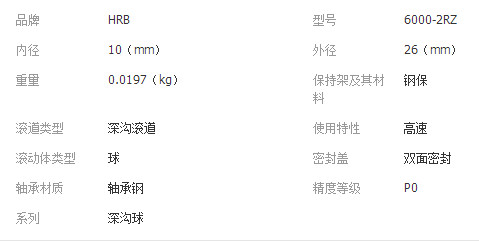 HRB哈尔滨轴承零类深沟球6000-2RZ内径10mm*外径26mm*厚度8mm