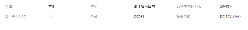 DC充电插口规格:1. 3.5x0.7 2. 3.5x1.0 3. 3.5x1.1 4. 3.5x1.3