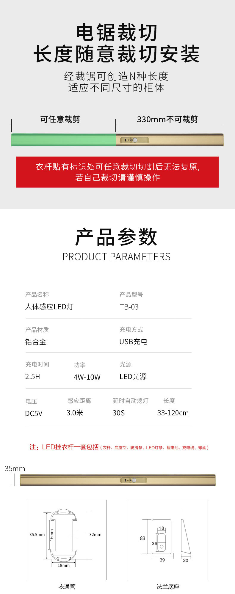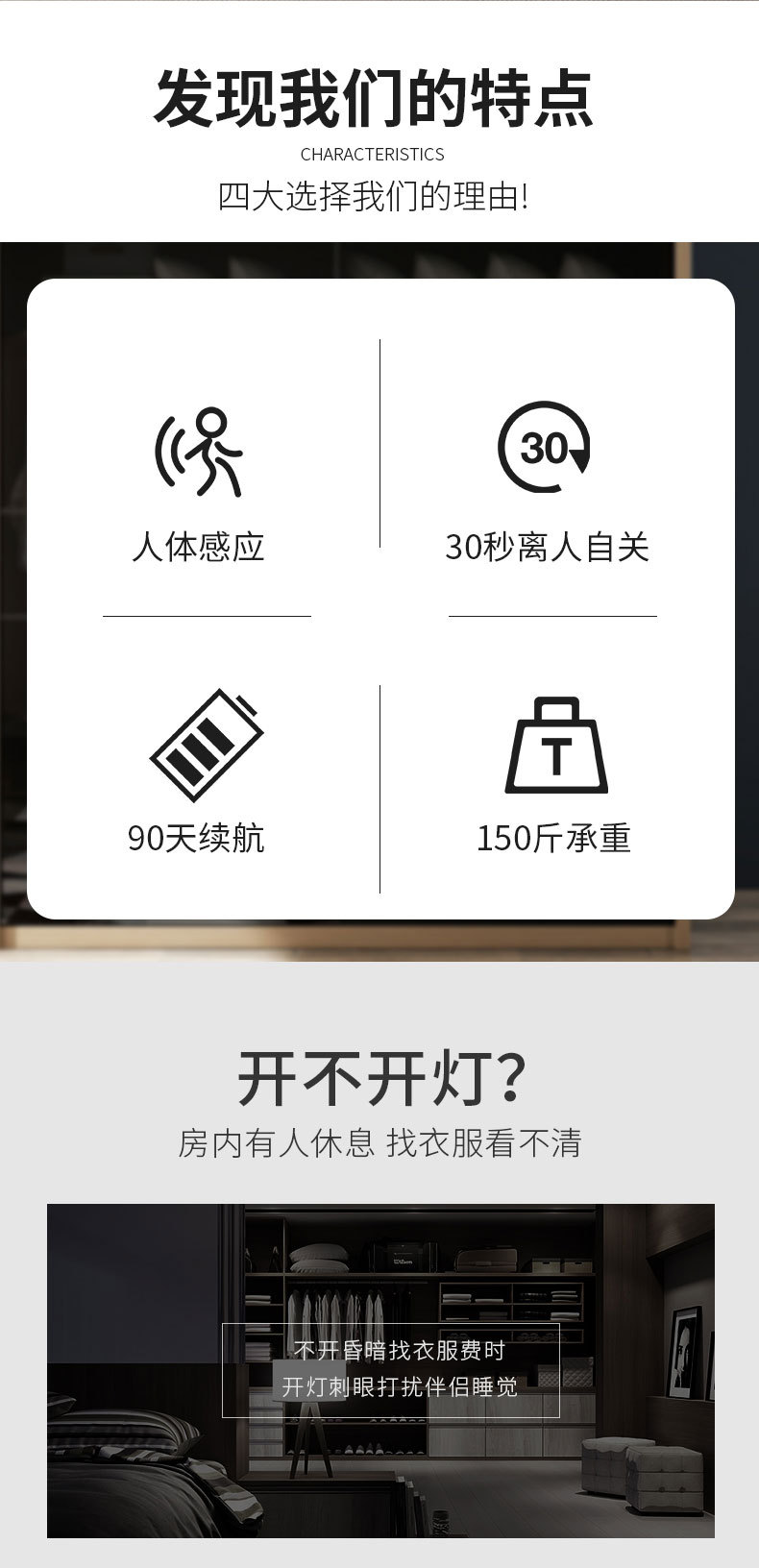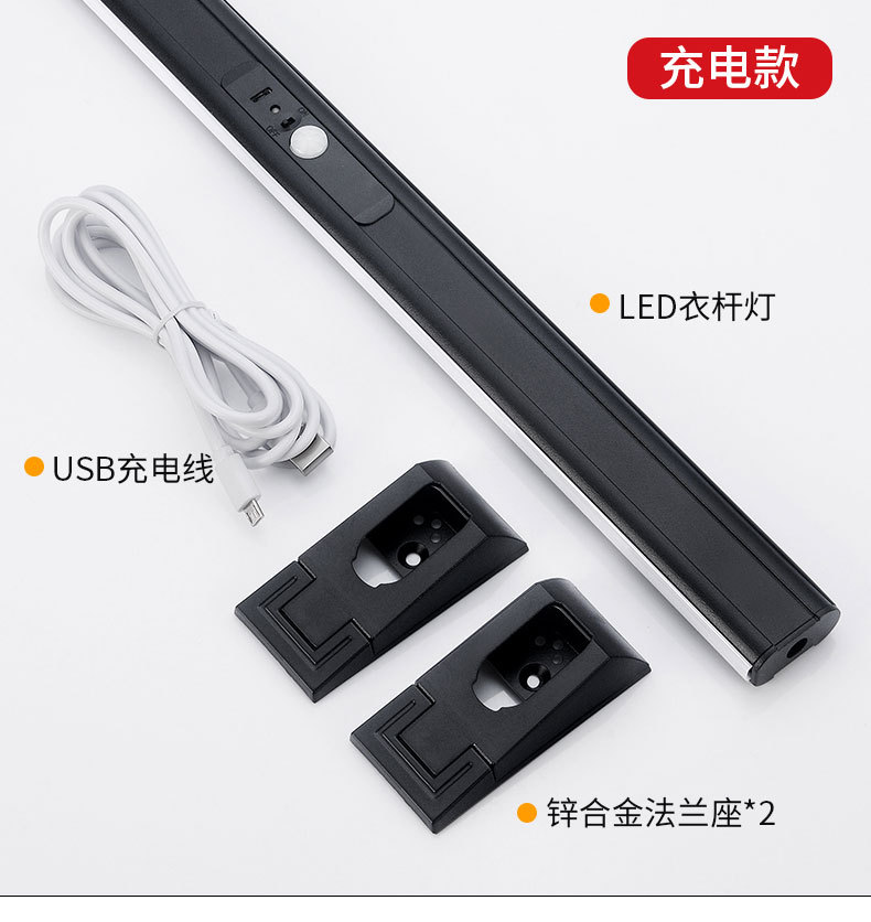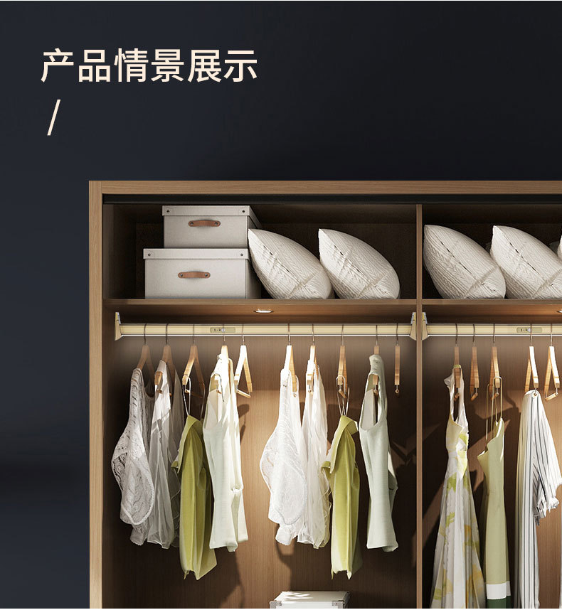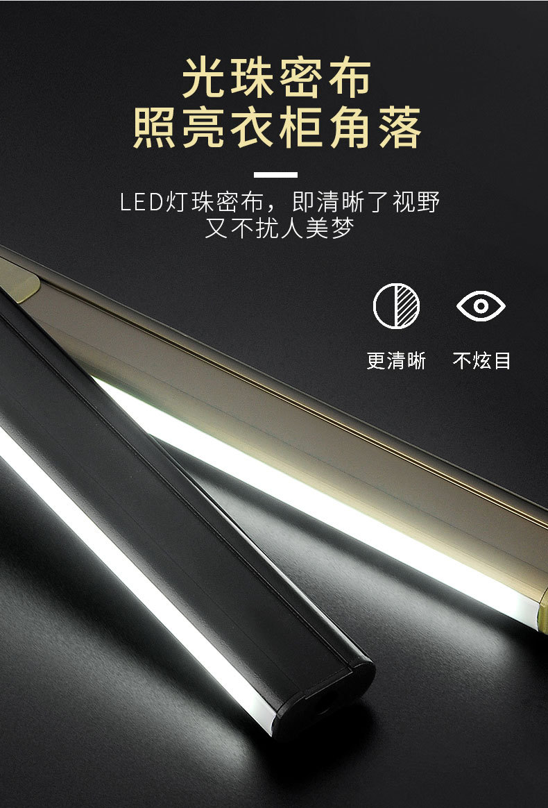智能感应衣杆LED衣柜人体感应衣杆衣通杆发光带灯衣杆加厚挂衣杆