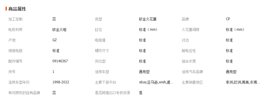 中性SPARK PLUS 09146367 跨境供应火花塞Spark Plug于沃