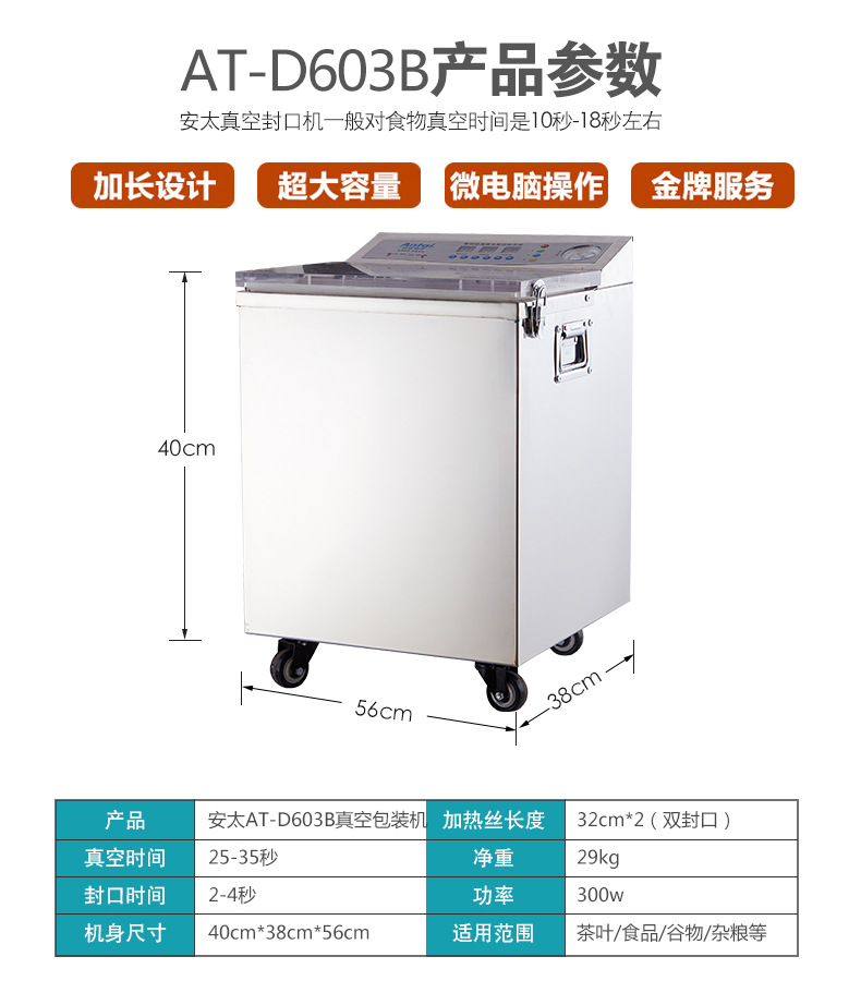 安太AT-D603B真空包装封口机干湿两用大米杂粮生熟食品茶叶真空机