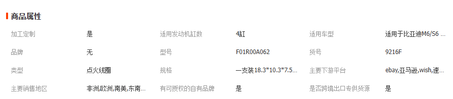 主营: 点火线圈 电源系统配件 车身及附件