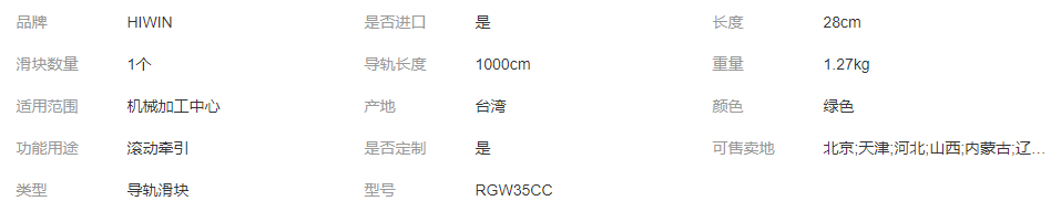 HIWIN上银滑块导轨RGW15/20/25/30CC/CA原装进口现货