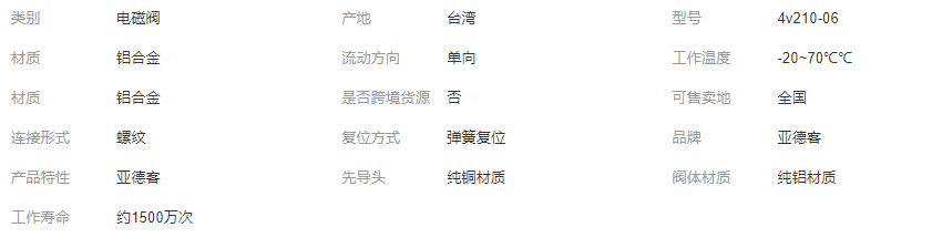 亚德客气动电磁阀4V210-08 4V310-10 4V110-06 4V410-15