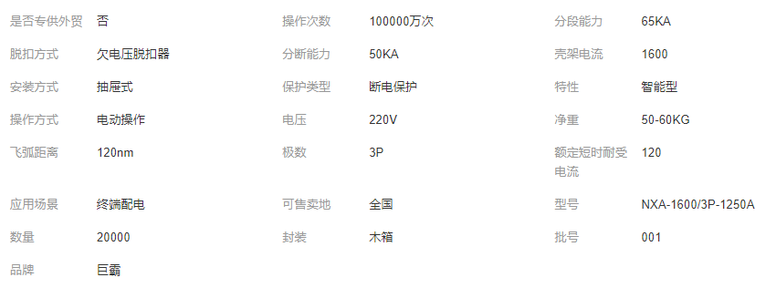 正泰电器NXA-1600/3P-1250A框架式断路器 可定制加工