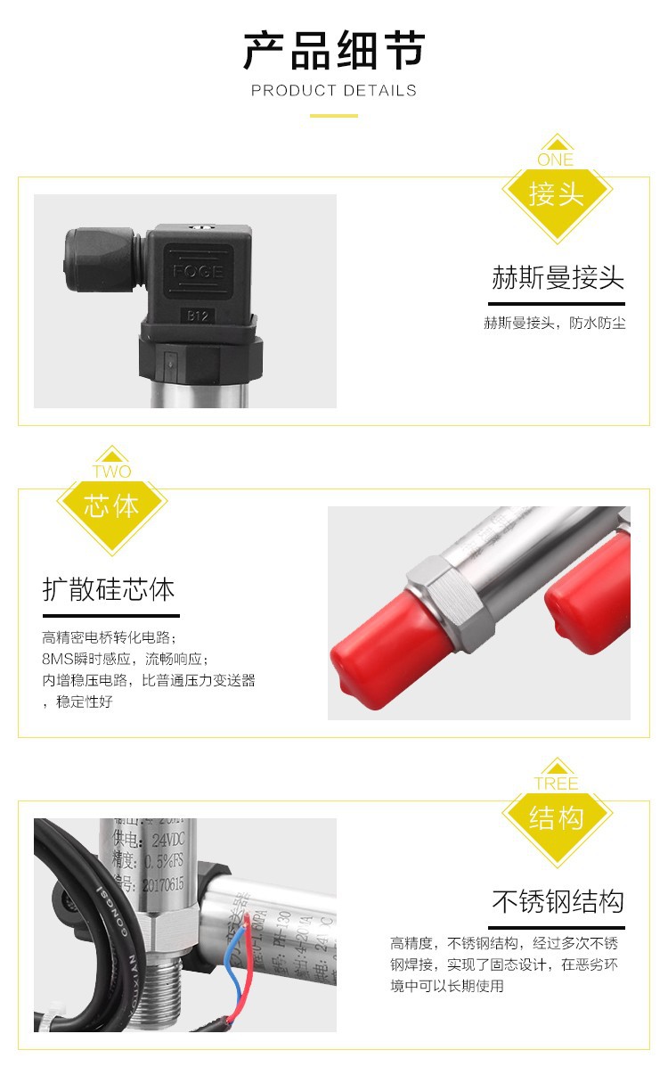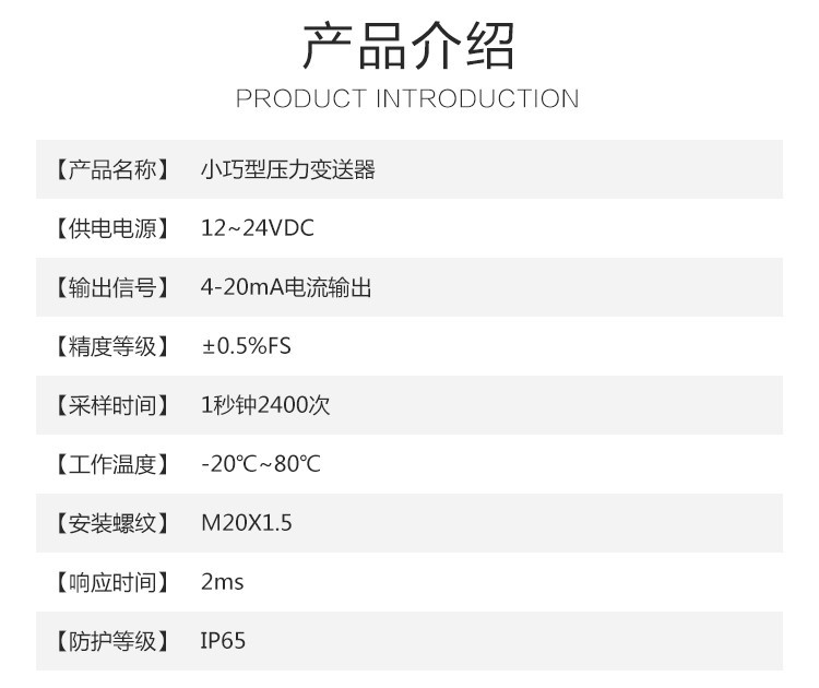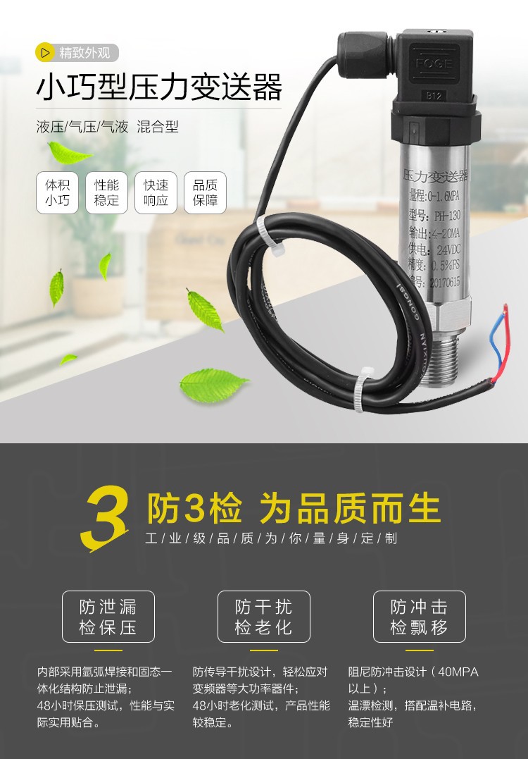 小巧型扩散硅压力传感器4-20mA恒压供水压力变送器气压液压油压