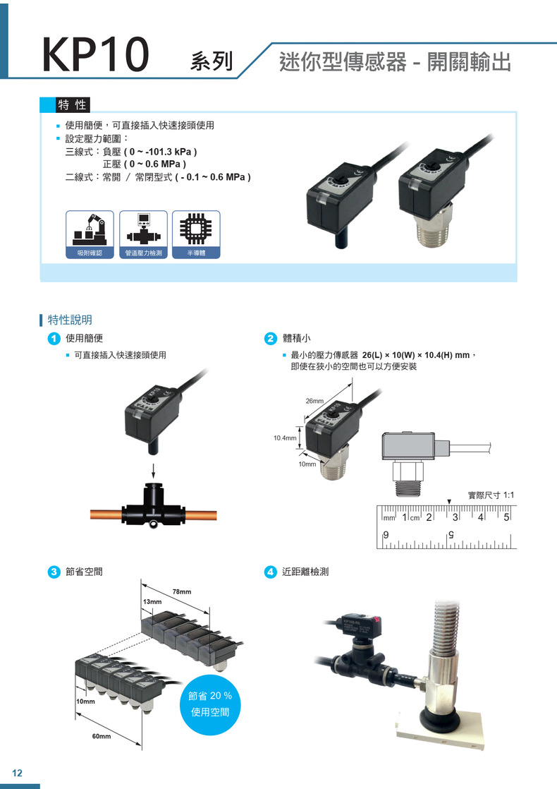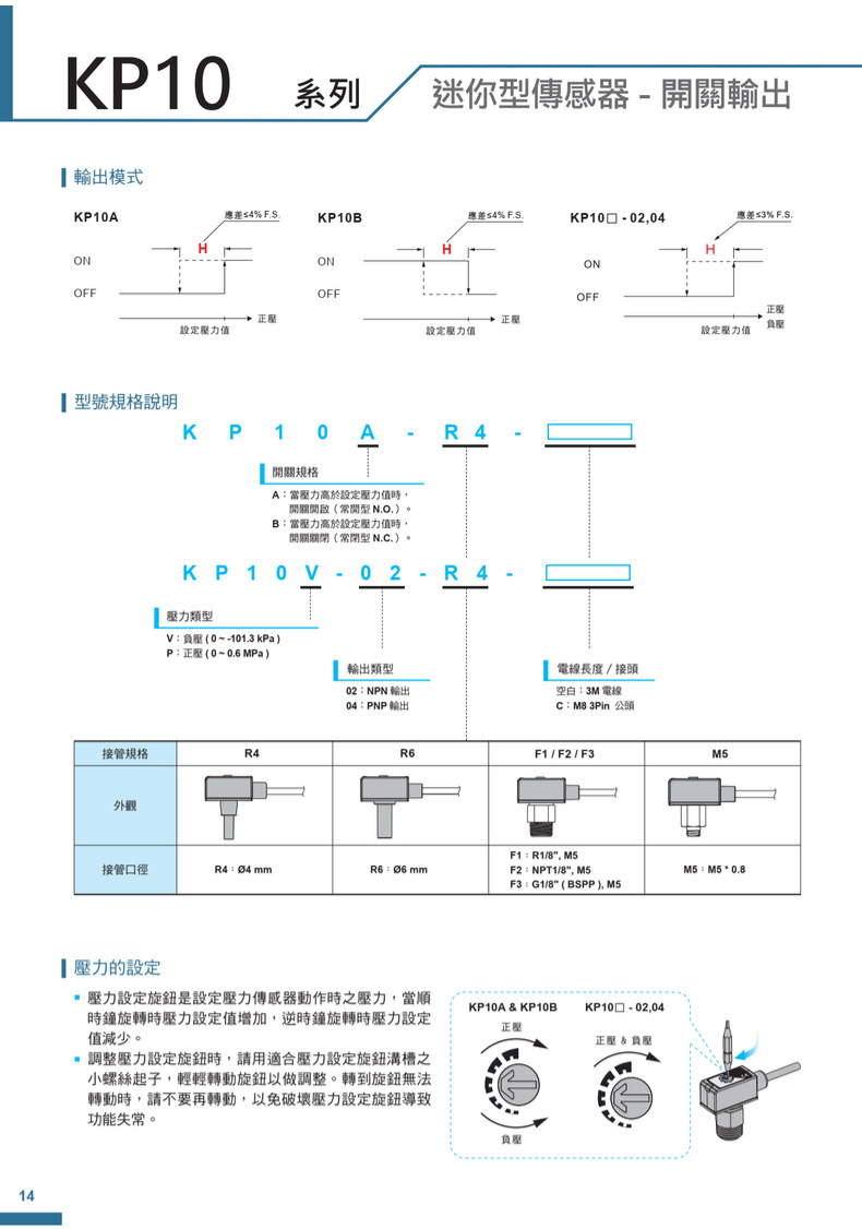 代理KP10B-R6台湾KITA经登压力传感器KP102-R6常闭型小型压力检测