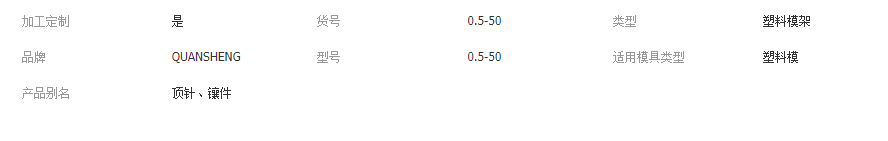 铨晟科技可按客户要求参照DME, DME-EOC, HASCO,CUMSA, STRACK,JTD, RABOURDIN, PCS, PROGRESSIVE, MISUMI, DMS, SUPERIOR,OPITZ, STAUBLI, FUTABA, PUNCH, SIDECO, PEDROTTI, VAP,ANKYO,UDEBA,IEM,DANLY, Lmina , LEMPCO, MEUSBURGER,NORMALIEN等世界品牌标准进行加工、检验。并能依国标GB日标JIS德标DIN美标AISI等国际行业标准制作。产品精密:公差 ± 0.001mm同轴度及真圆度 0.002 mm表面光洁度RA0.025加工外径0.2MM以上长度6000MM任意公差尺寸欢迎订制。