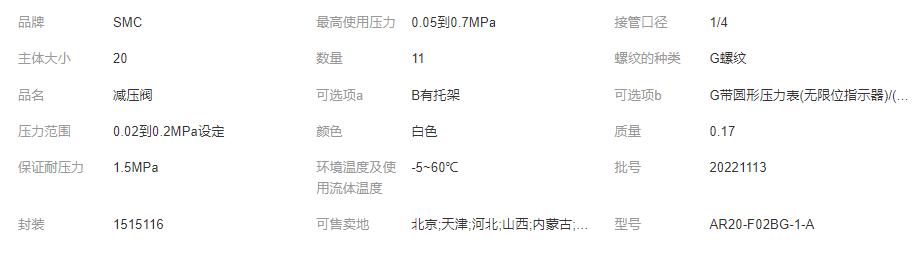 产品: 浏览次数:390SMC 减压阀 AR20-F02BG-1-A 气源处理件 原装 现货