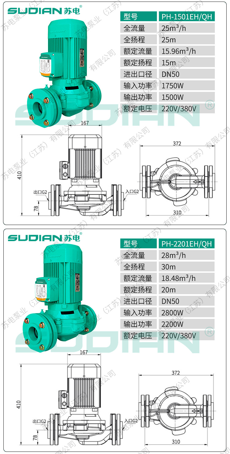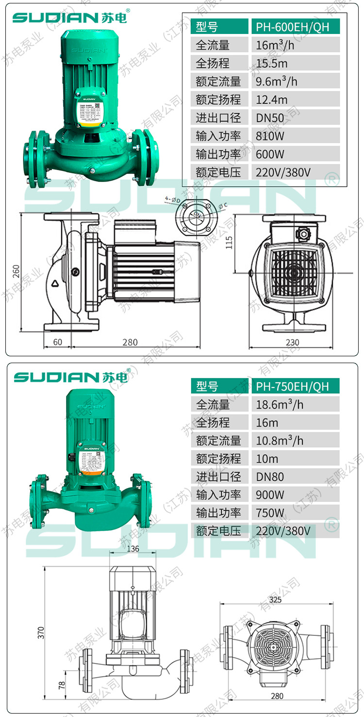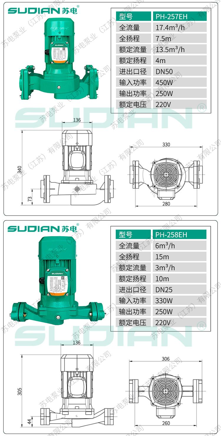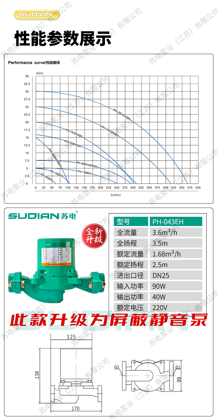 PH-150EH苏电泵业SUDIAN热水循环泵地暖太阳能空气能空增压泵