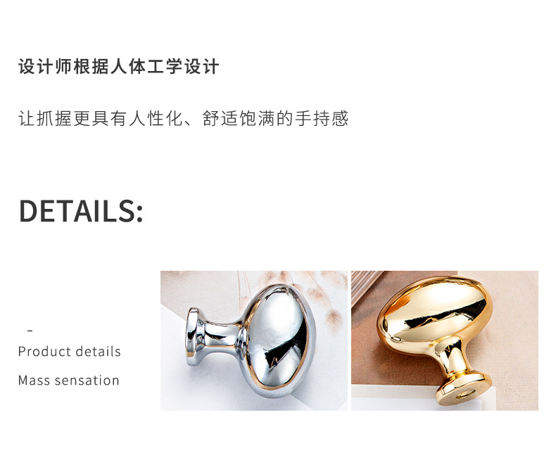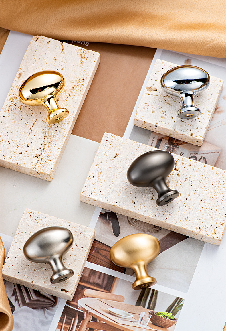 意式法式椭圆拉手鸽子蛋门把手轻奢单孔衣橱门抽屉亮金色铜色拉手