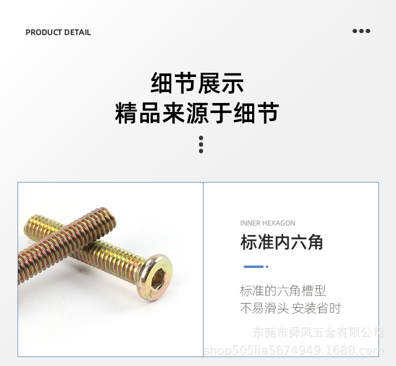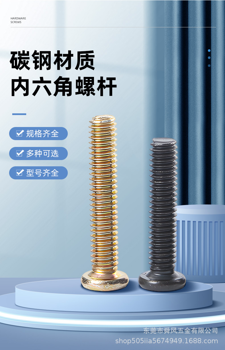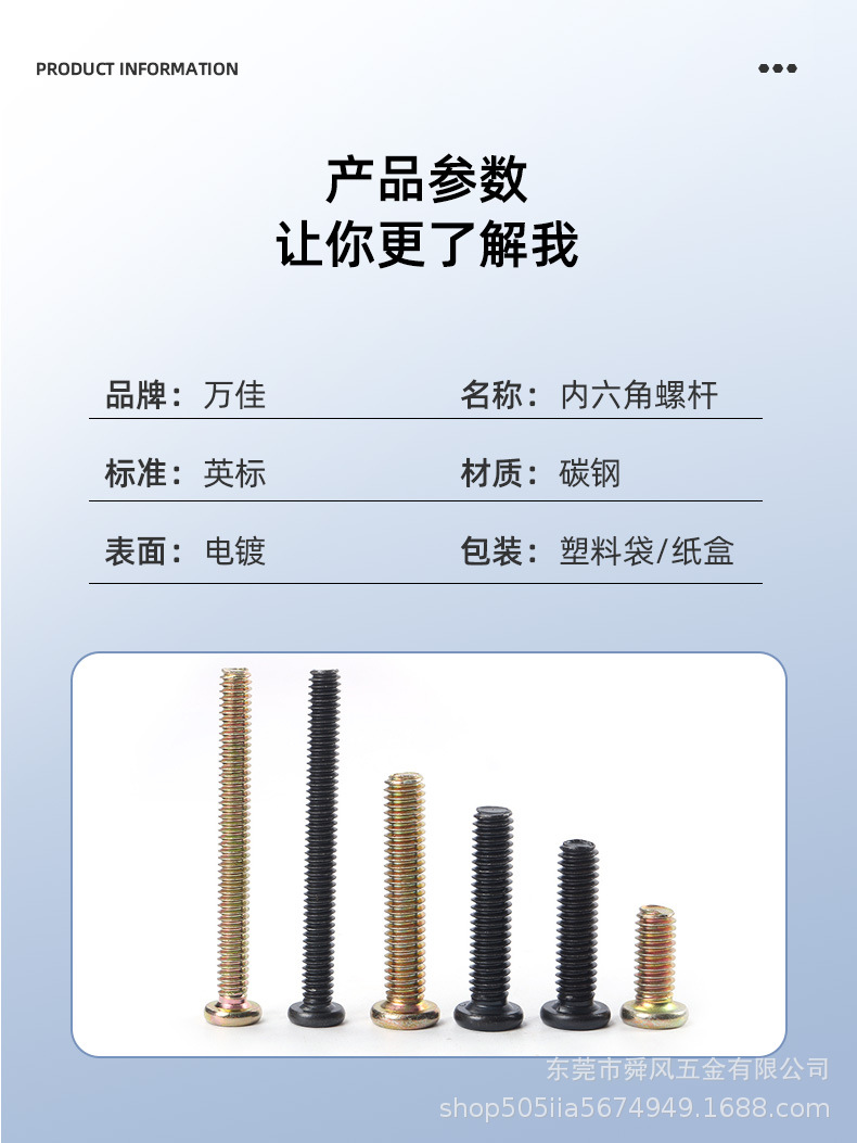 英制家具螺丝平圆头内六角螺杆碳钢内六角螺钉 链接件M1 /4 M5/16