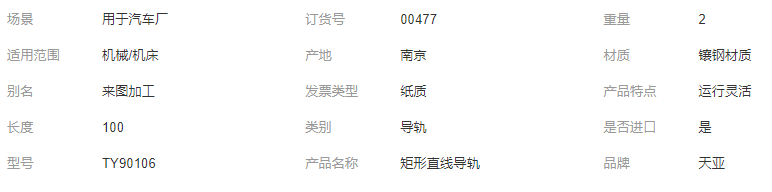 TY90106 矩形直线导轨 天亚 用于汽车厂 运行灵活 来图加工 镶钢材质