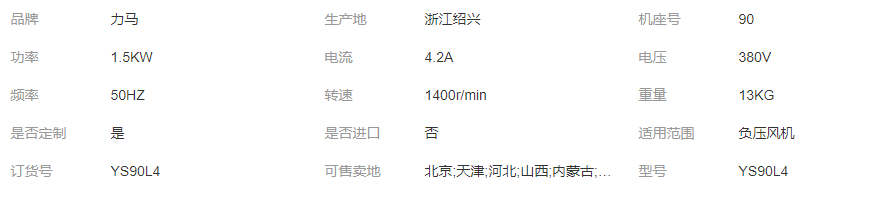 YS90L4空调电机 工业冷风机、负压风机专用电机 1.5Kw 低噪声