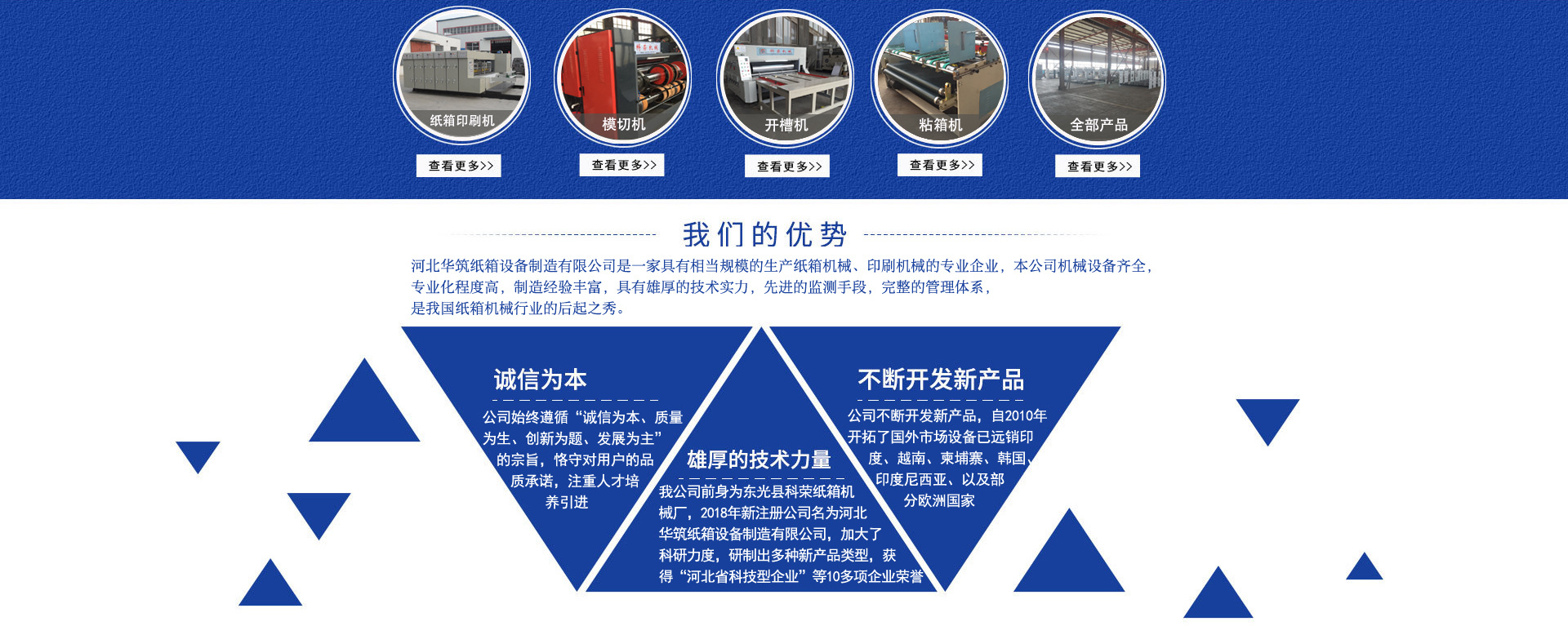 我公司前身为东光县科荣纸箱机械厂,自1992年成立以来,不断扩展企业规模,立足现在放眼未来,内强管理外拓市场,自2010年开拓了国外市场,设备已远销印度、越南、柬埔寨、韩国、印度尼西亚、以及部分欧洲国家,我公司2018年新注册公司名为河北华筑纸箱设备制造有限公司,进一步扩大了企业规模,同时也加大了科研力度,研制出多种新产品类型,获得“河北省科技型企业”等10多项企业荣誉,力求以物美价廉的产品和完备周到的售后服务真正做到让客户买的放心,用的舒心,实现双赢多赢,董事长李树军欢迎社会各界人事莅临指导,共创实体经济发展新台阶