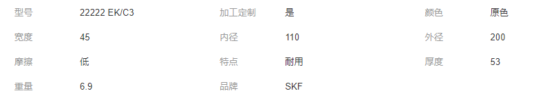 SKF 球面滚子圆锥孔轴承 22222 EK/C3 官方授权 原厂原包装正品保证
