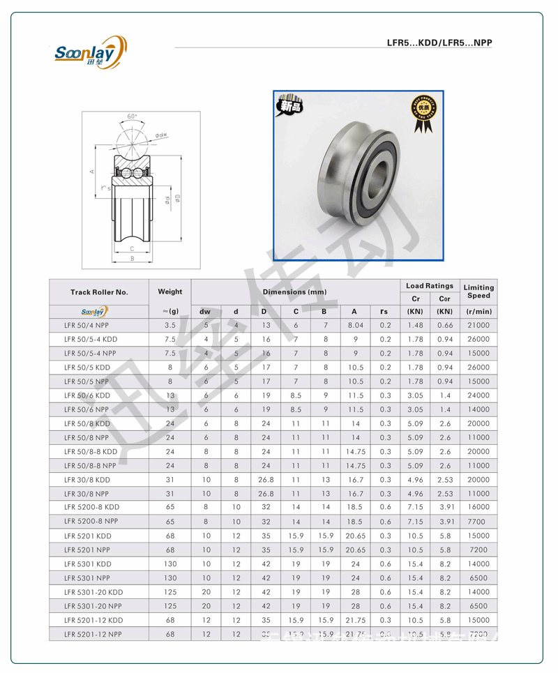 U型槽双列导轨滚轮轴承 LFR系列LFR5201KDD LFR5201NPP