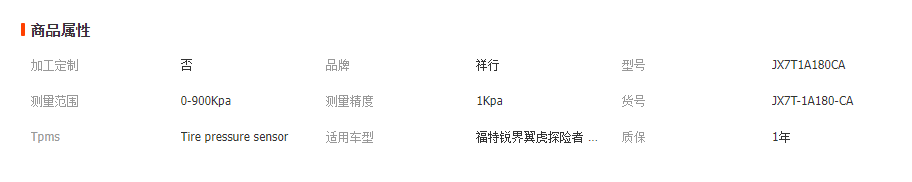 胎压传感器JX7T1A180CA 适用于福特锐界翼虎林肯飞行员压力监测器