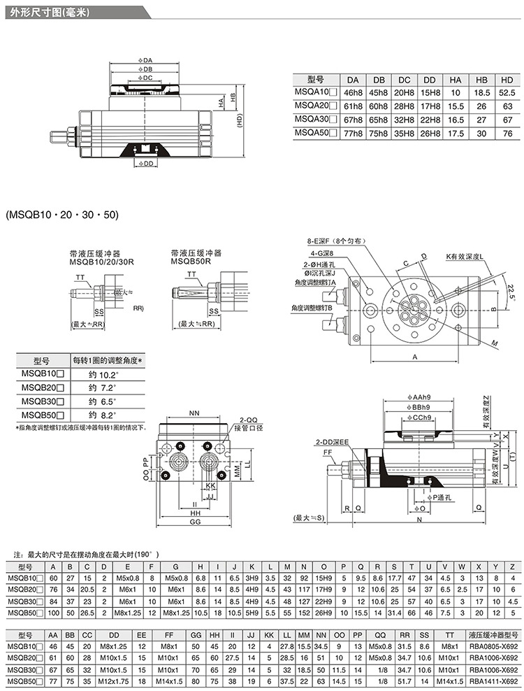 厂家直销 MSQ旋转气缸 MSQ10-A 旋转气缸90度 180度 高精度