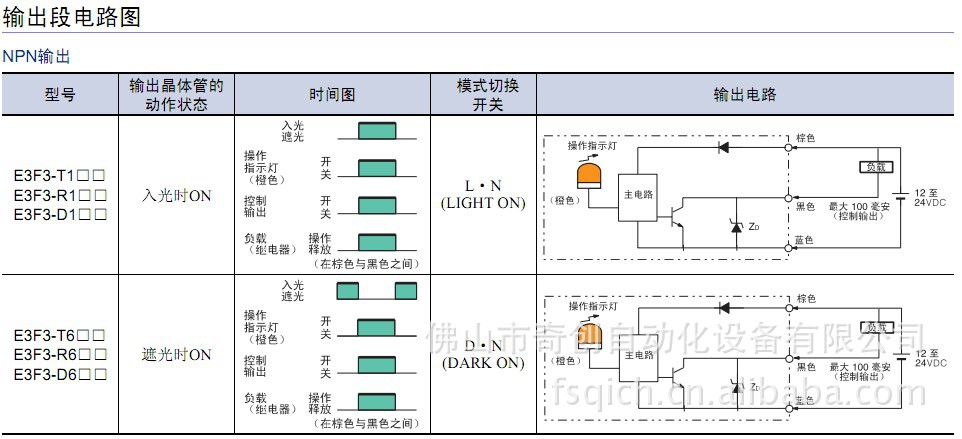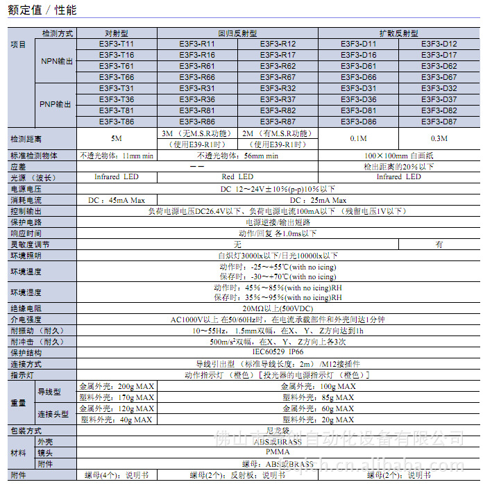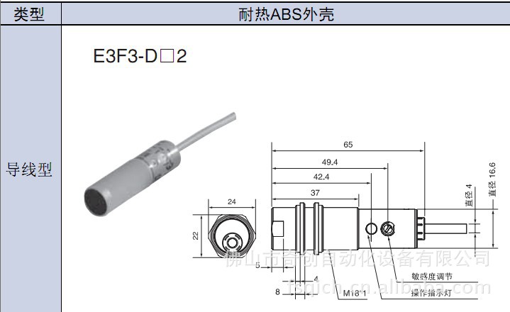 欧姆龙微型传感器--- E3F3-D12 导线型