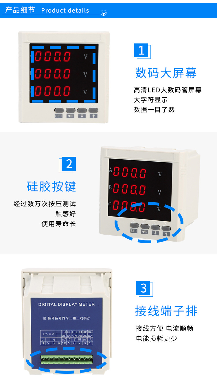 HR194I-DK4 三相电流表 96*48三相电压表带一路
