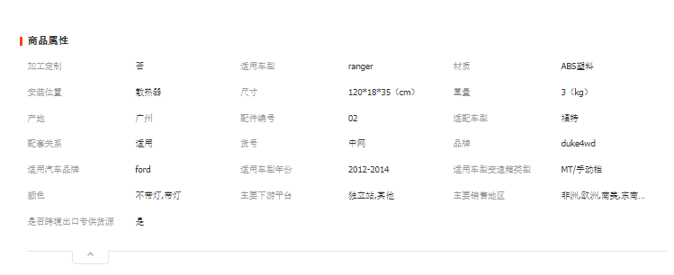 适用福特Ford中网RNAGER改装汽车前脸T6皮卡带灯栏栅一件代销