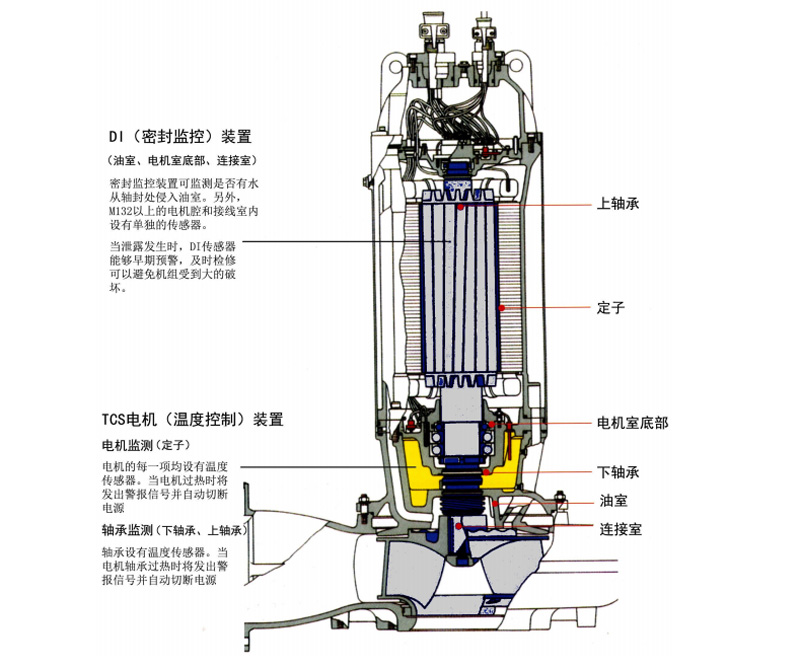 泵设有一套保护系统,用于过载、故障、漏水等发出指示,应该在电机或主轴出现严重损坏前发出相关信号。