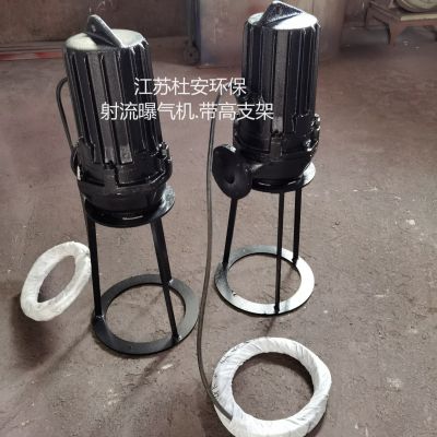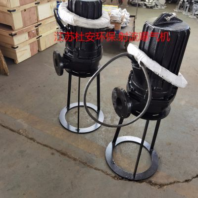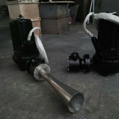 潜水射流曝气机的原理是:通过潜水泵产生的水流经过喷嘴形成高速水流,在喷嘴周围形成负压吸入空气,经混合室与水流混合,在喇叭形的扩散管内产生水气混合流,高速喷射而出,