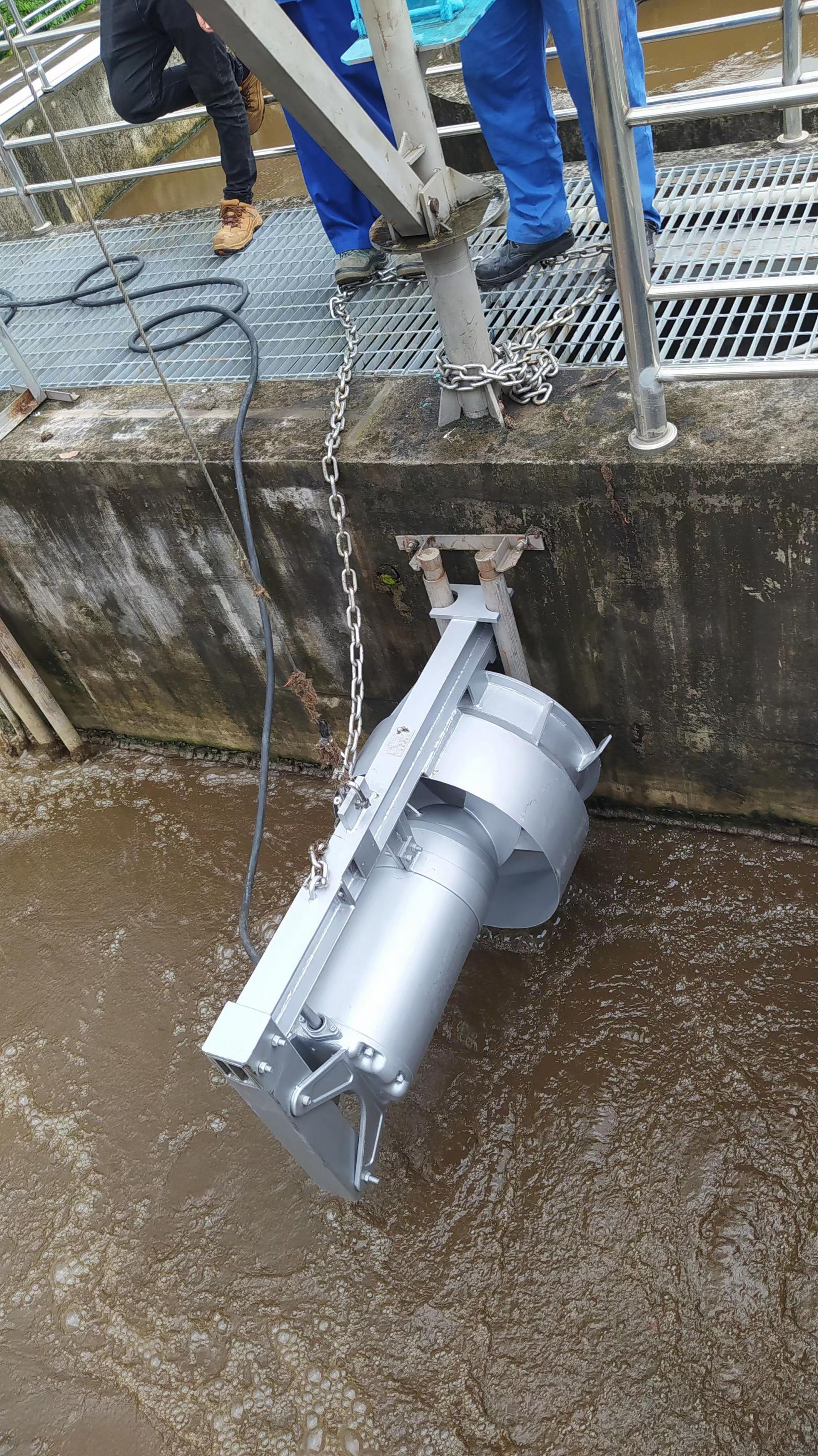 (1)潜水回流泵能自动稳固地与排水连接座联接,并且能在2根平行导杆的引导下从泵坑顶部到水泵连接座自由滑动。